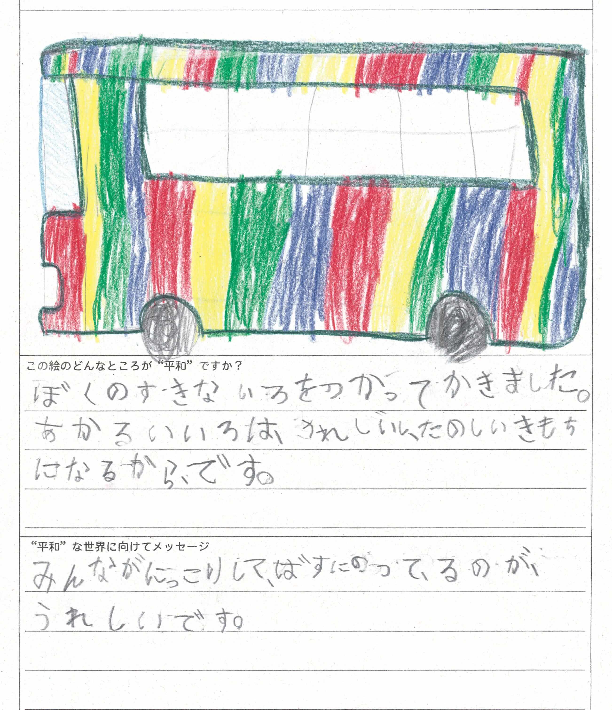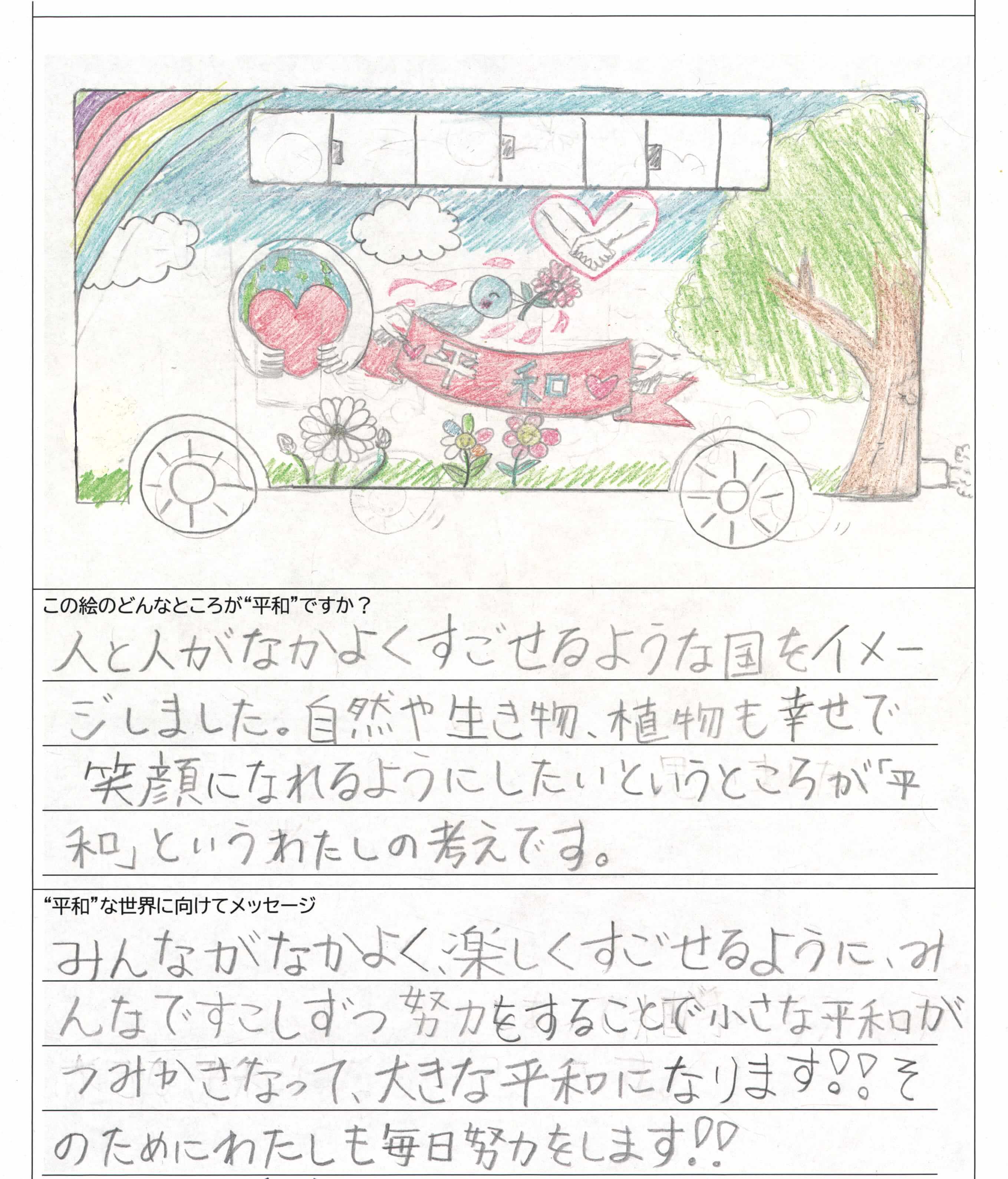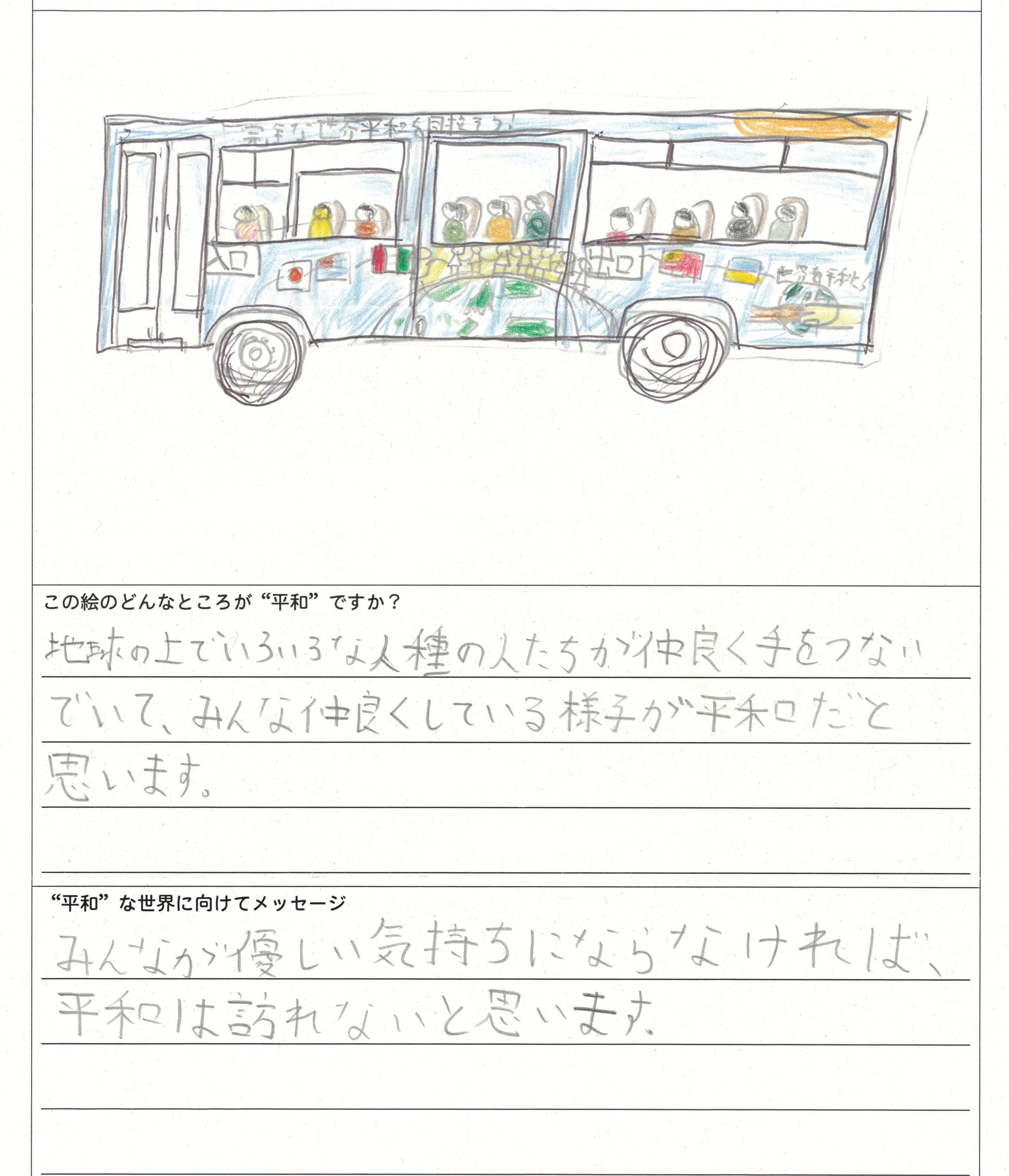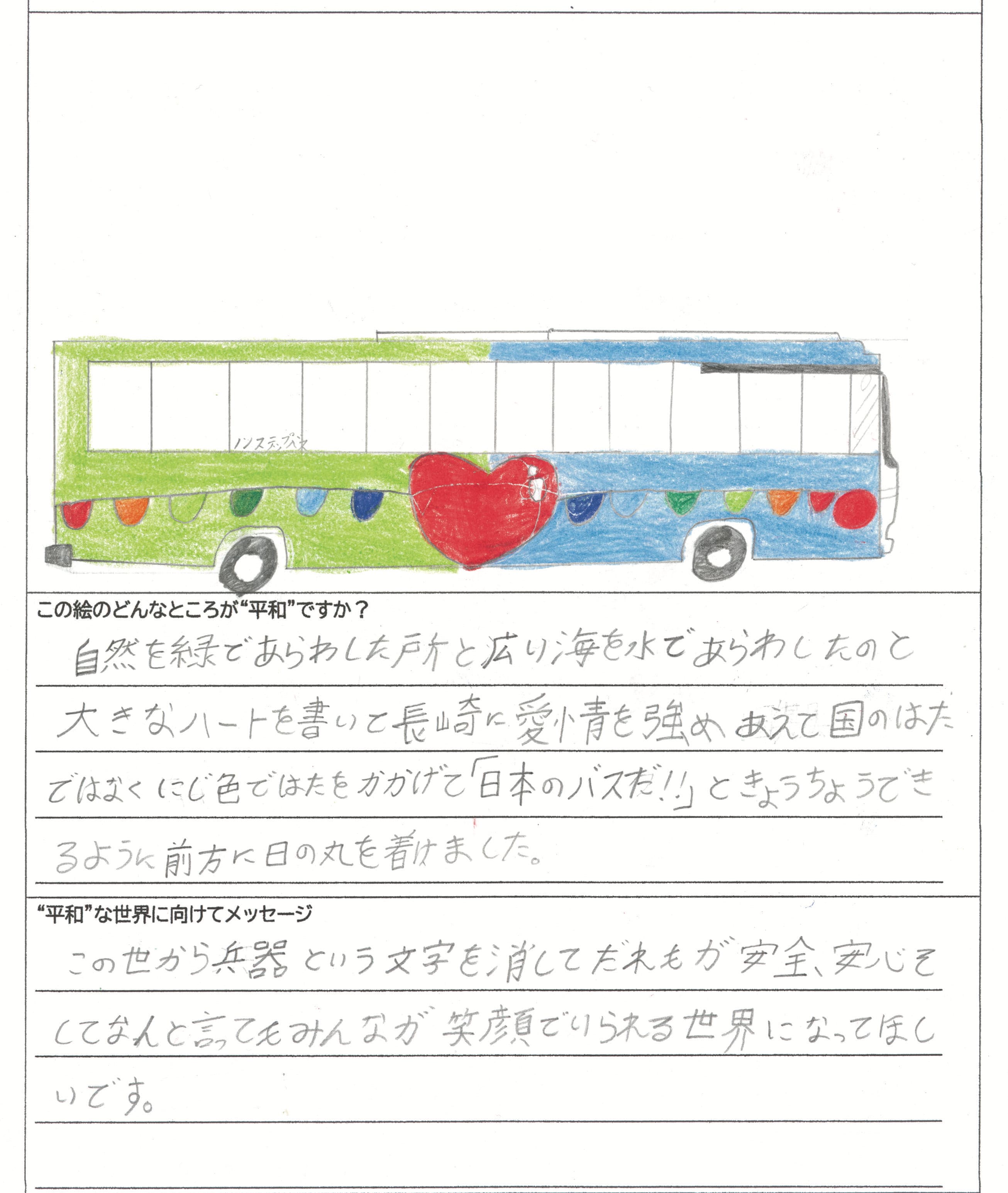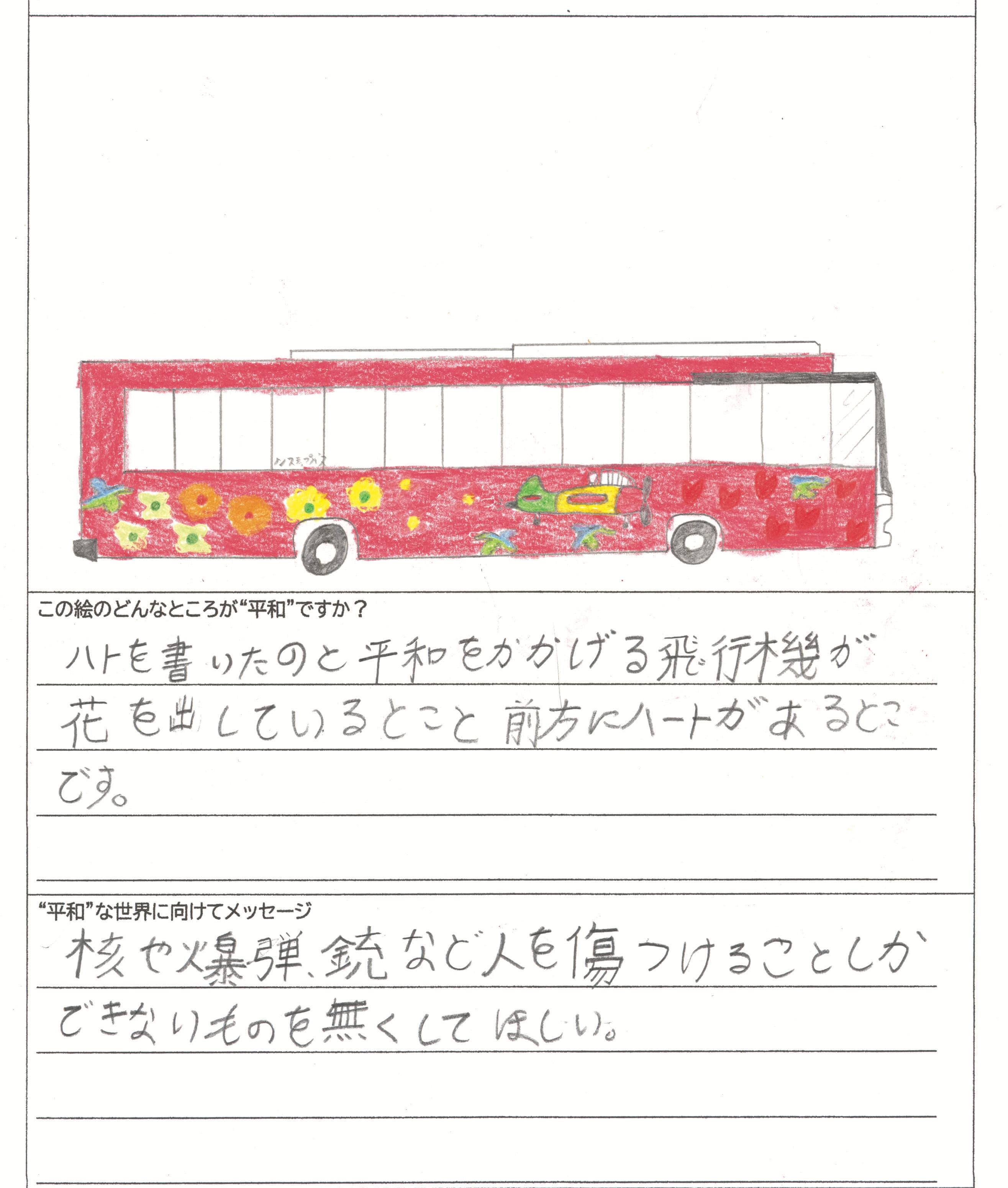 さらに、令和4年度からは全国の小学生を対象とした「平和のバスデザインコンテスト」を実施し、選ばれたデザインをバスの車体にラッピングした『平和のバス』を運行しています。