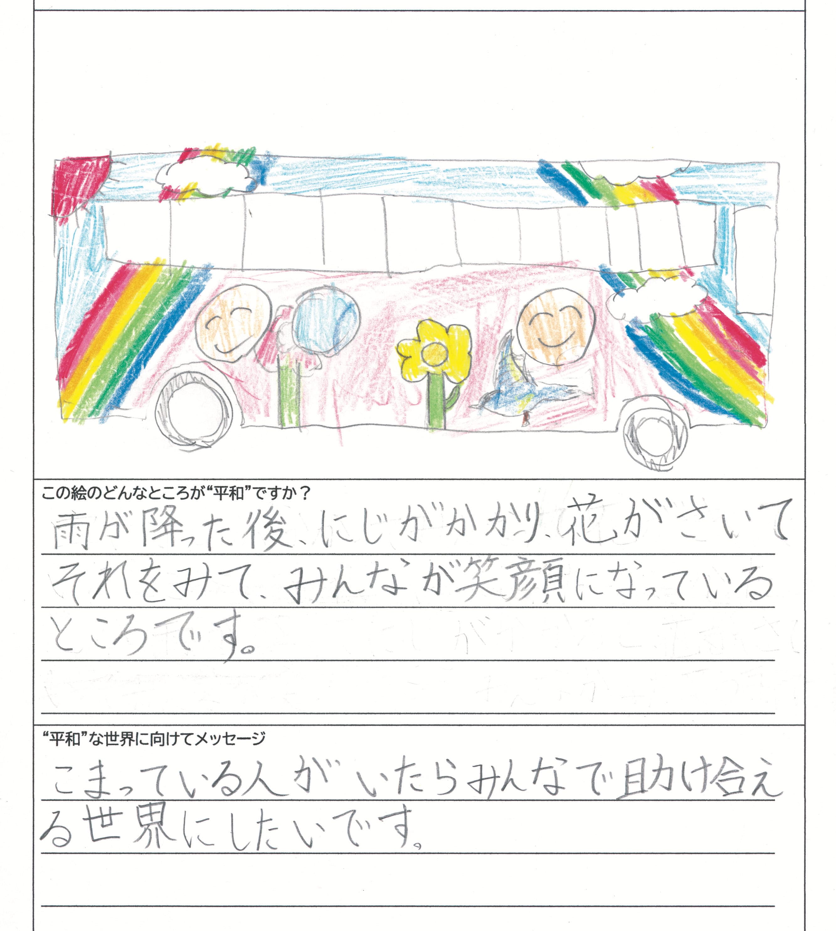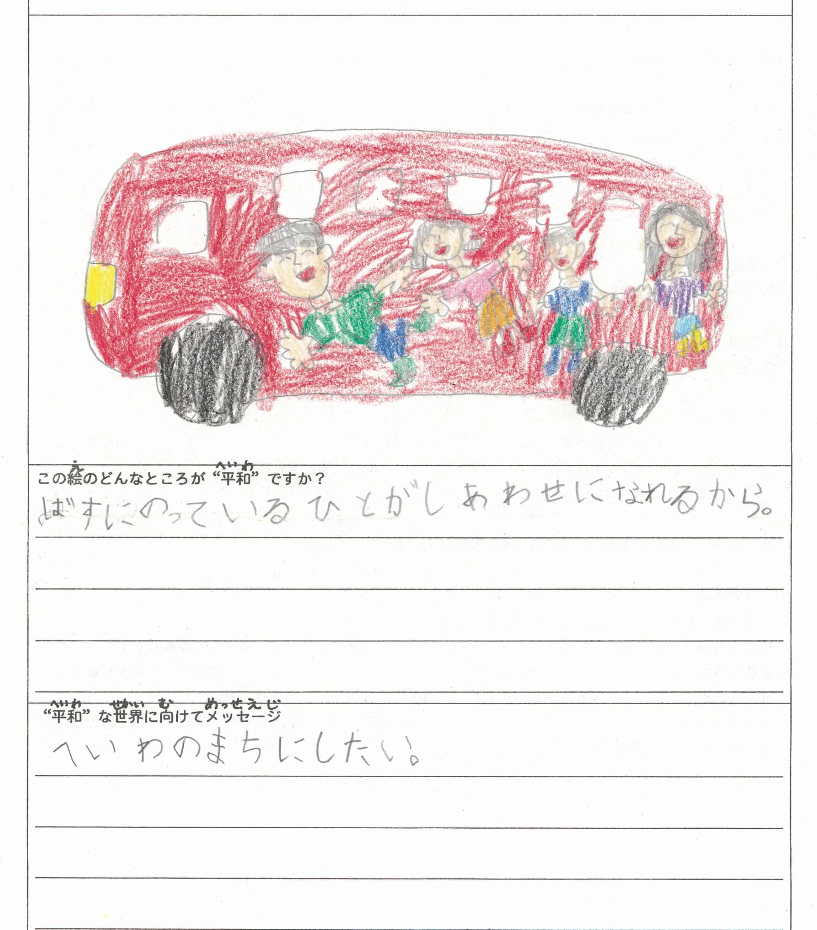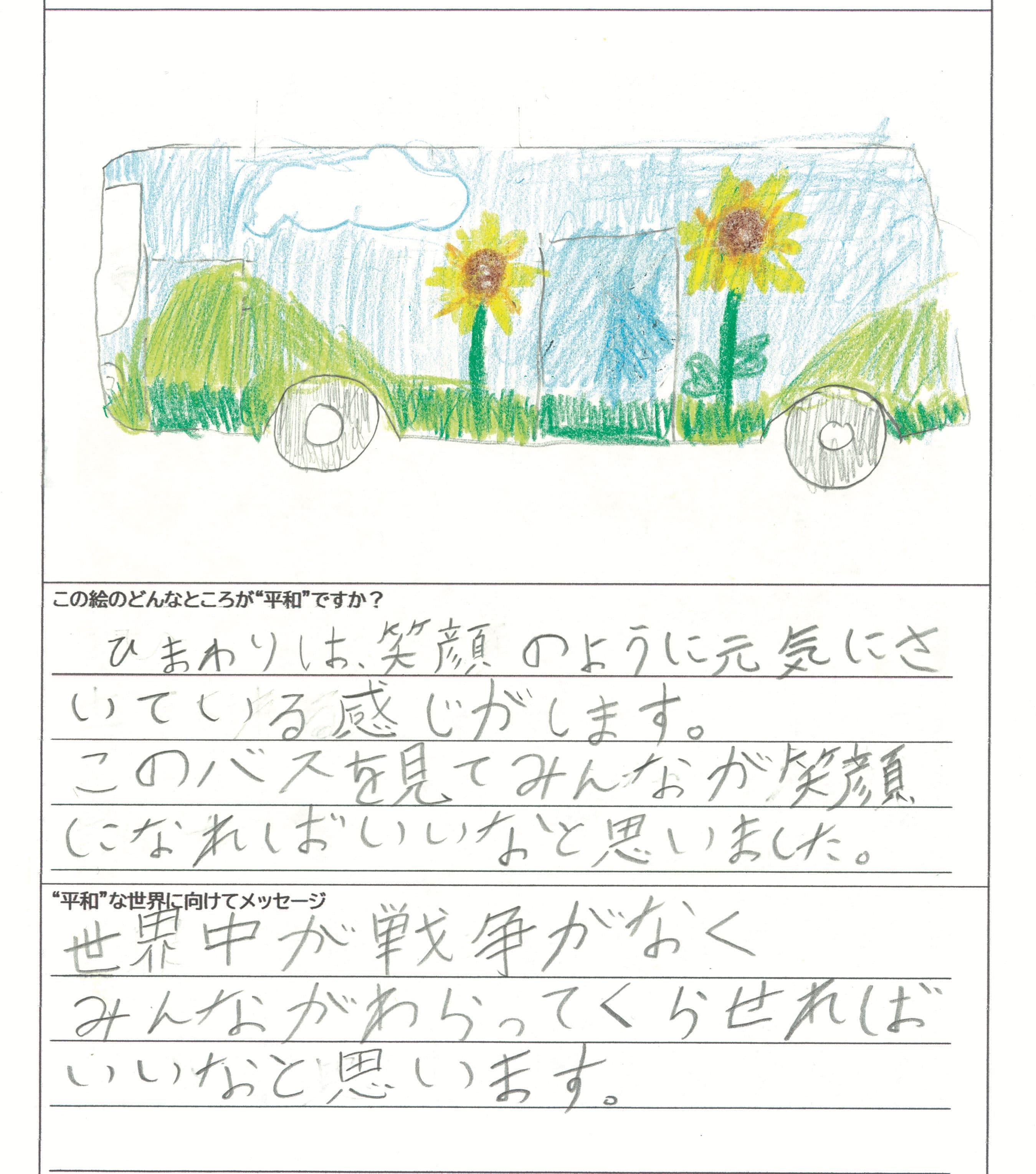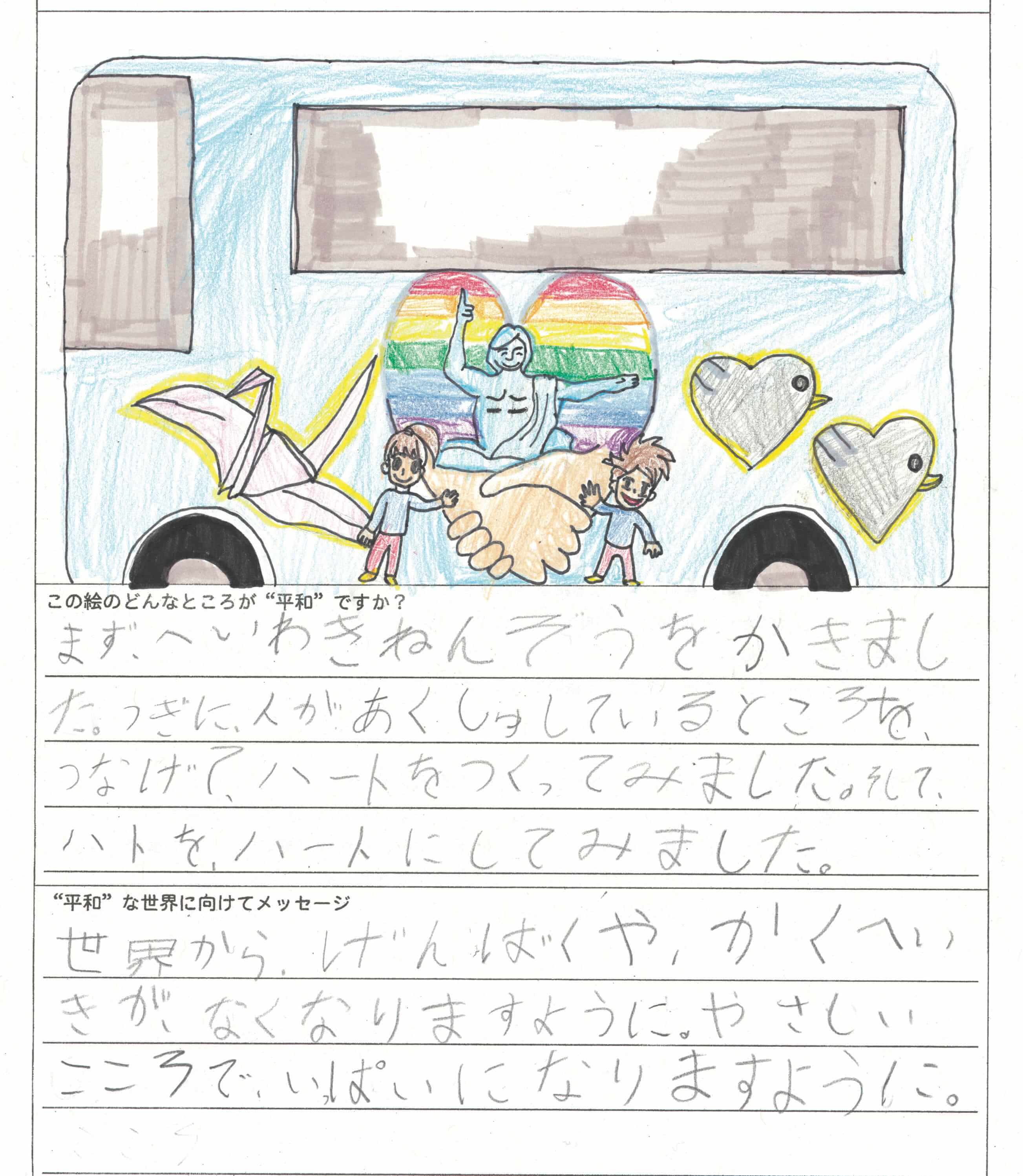 さらに、令和4年度からは全国の小学生を対象とした「平和のバスデザインコンテスト」を実施し、選ばれたデザインをバスの車体にラッピングした『平和のバス』を運行しています。