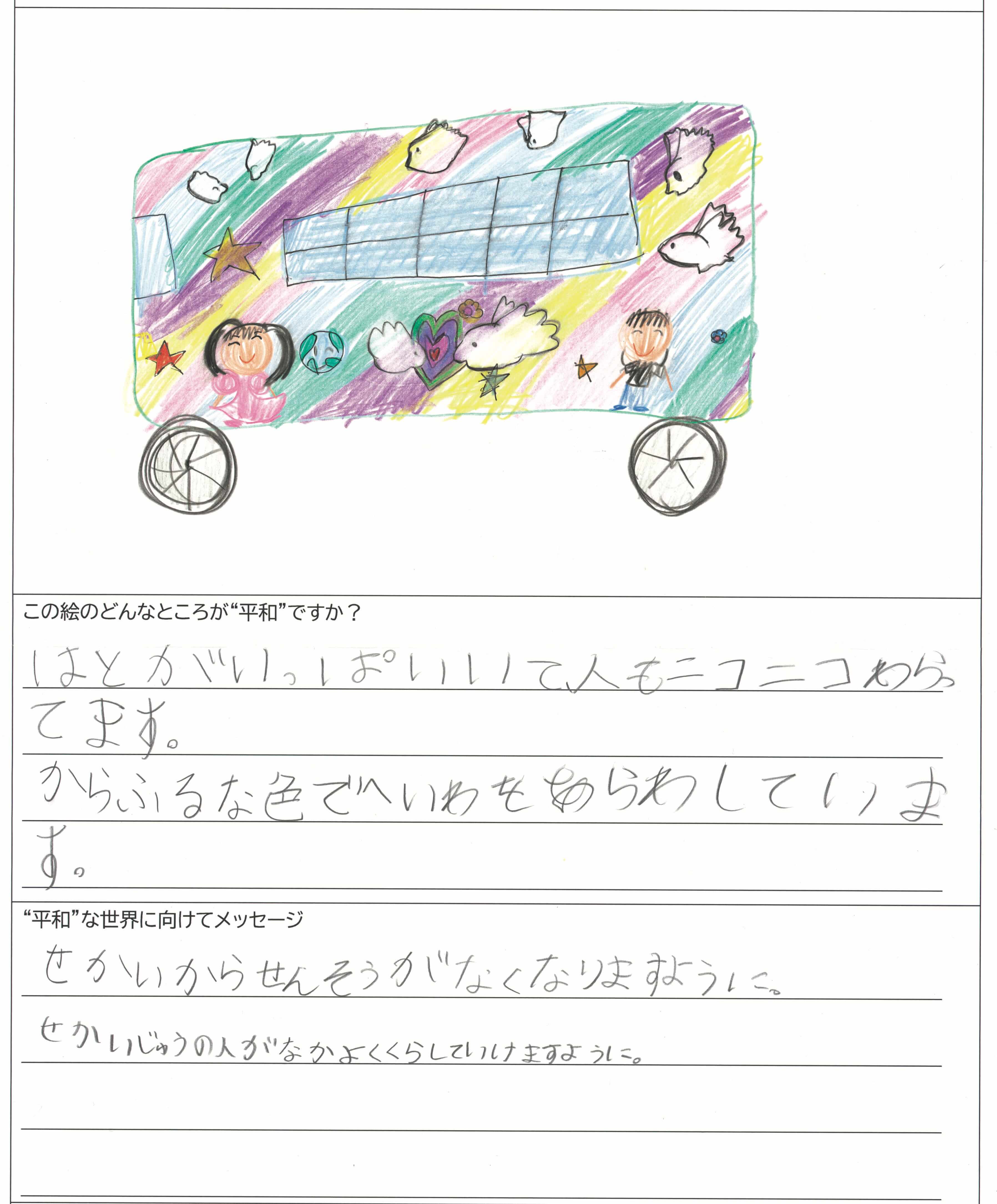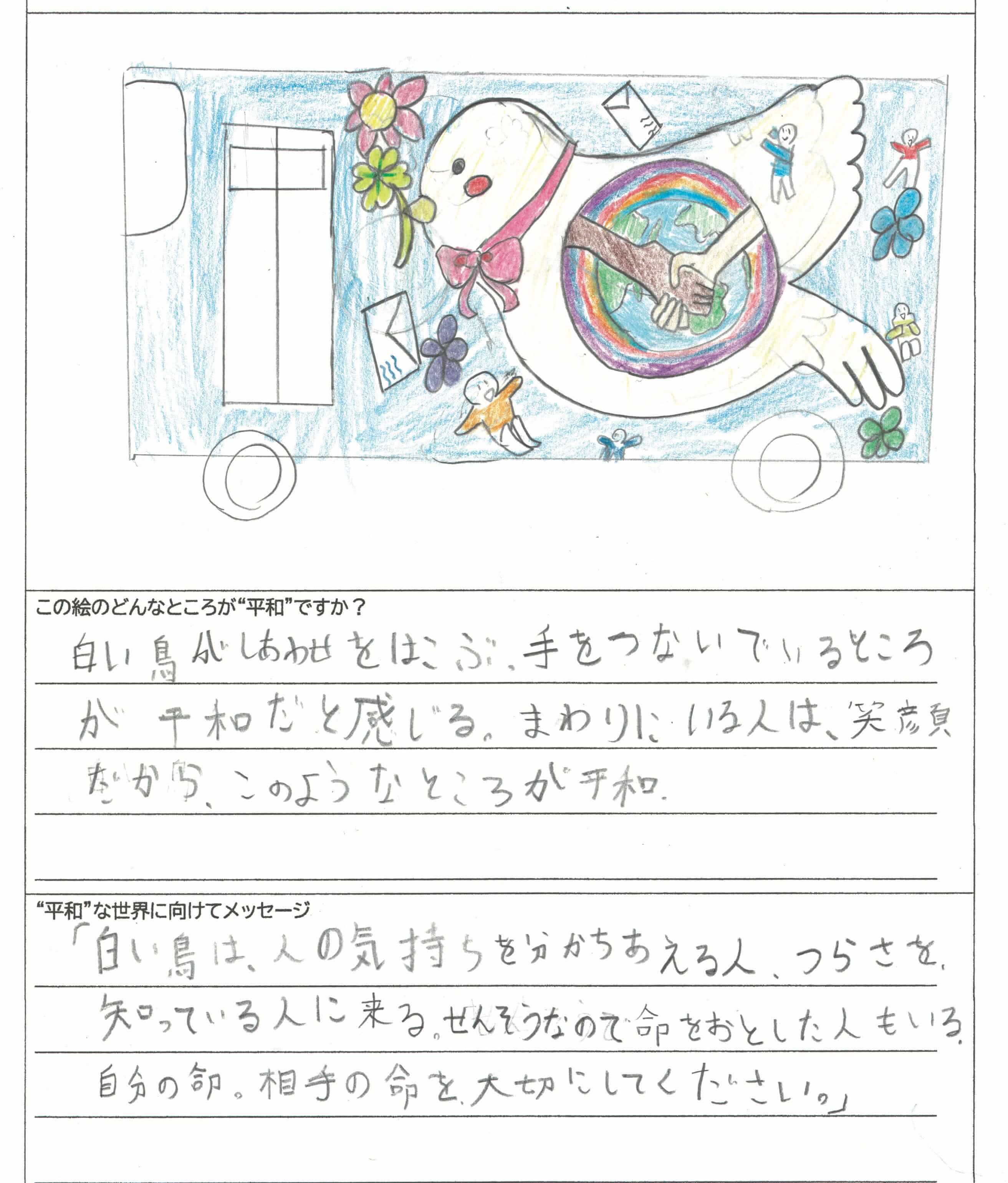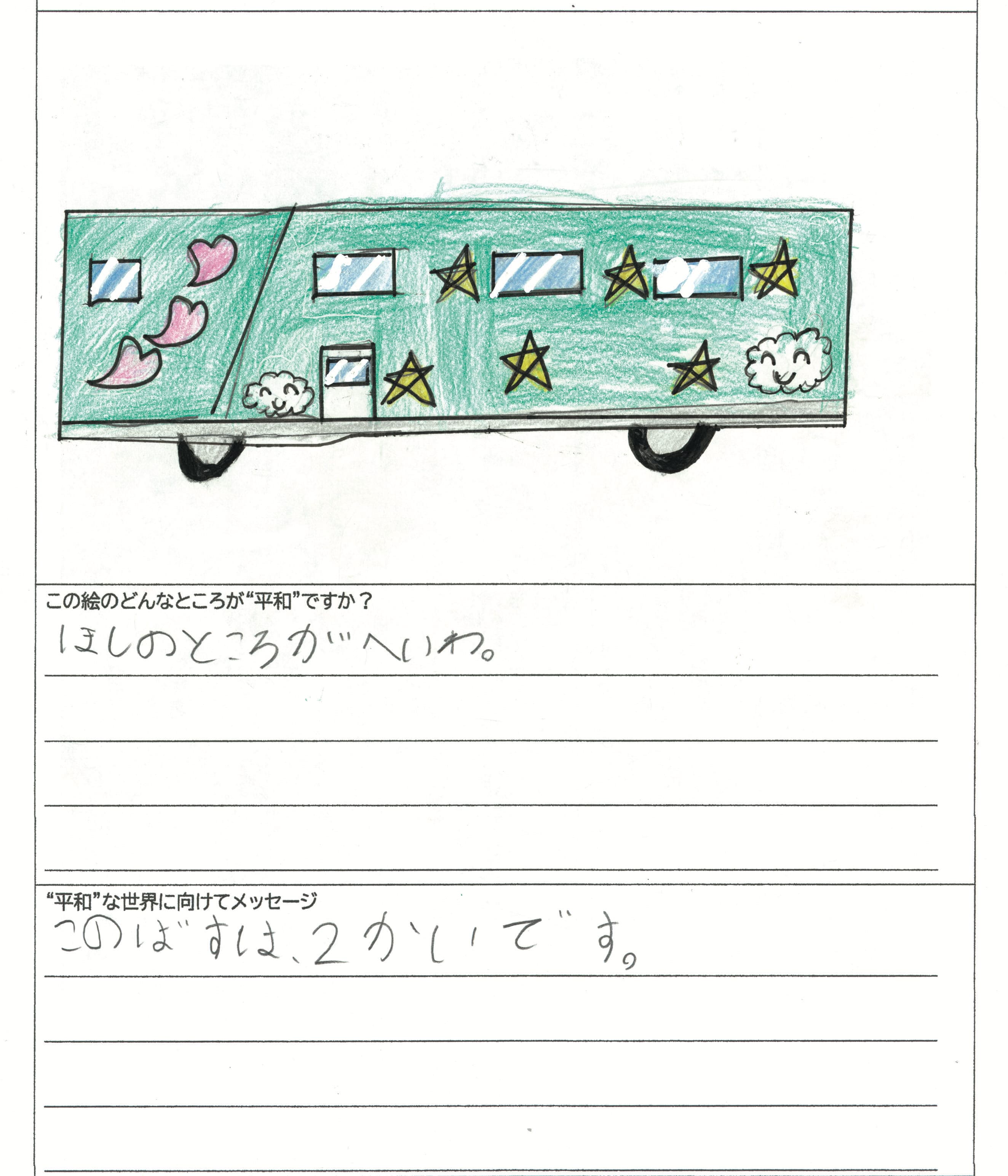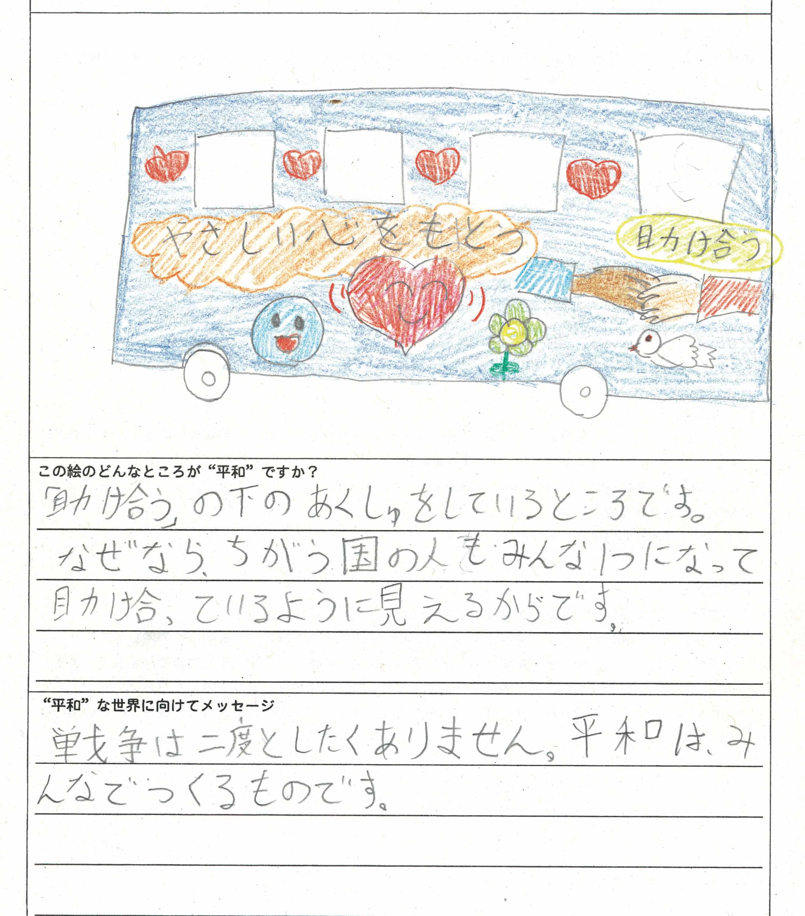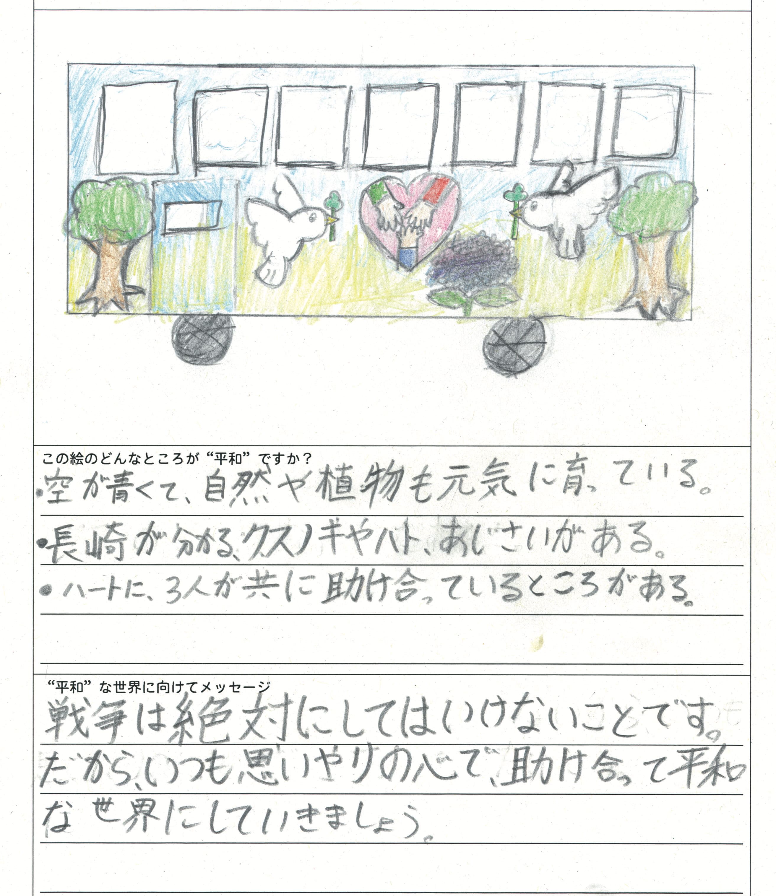 さらに、令和4年度からは全国の小学生を対象とした「平和のバスデザインコンテスト」を実施し、選ばれたデザインをバスの車体にラッピングした『平和のバス』を運行しています。