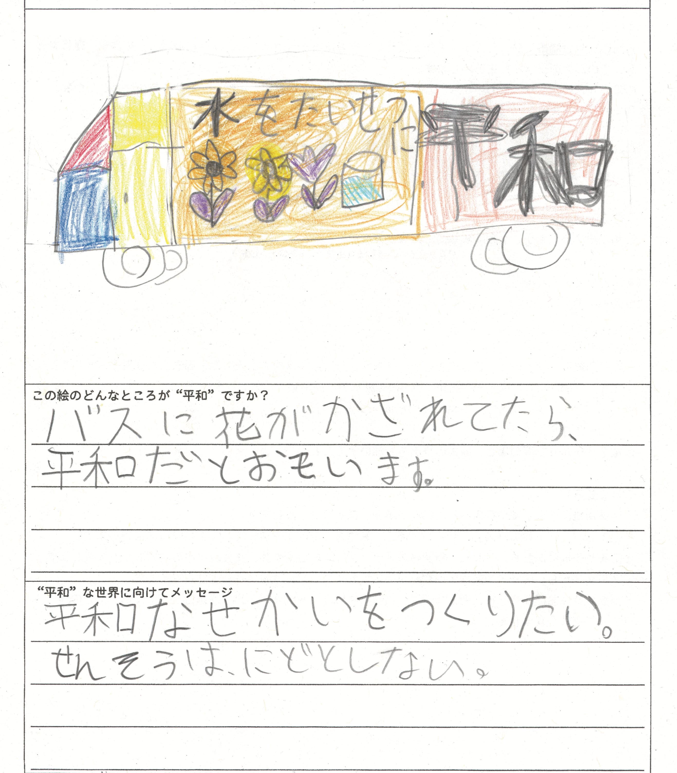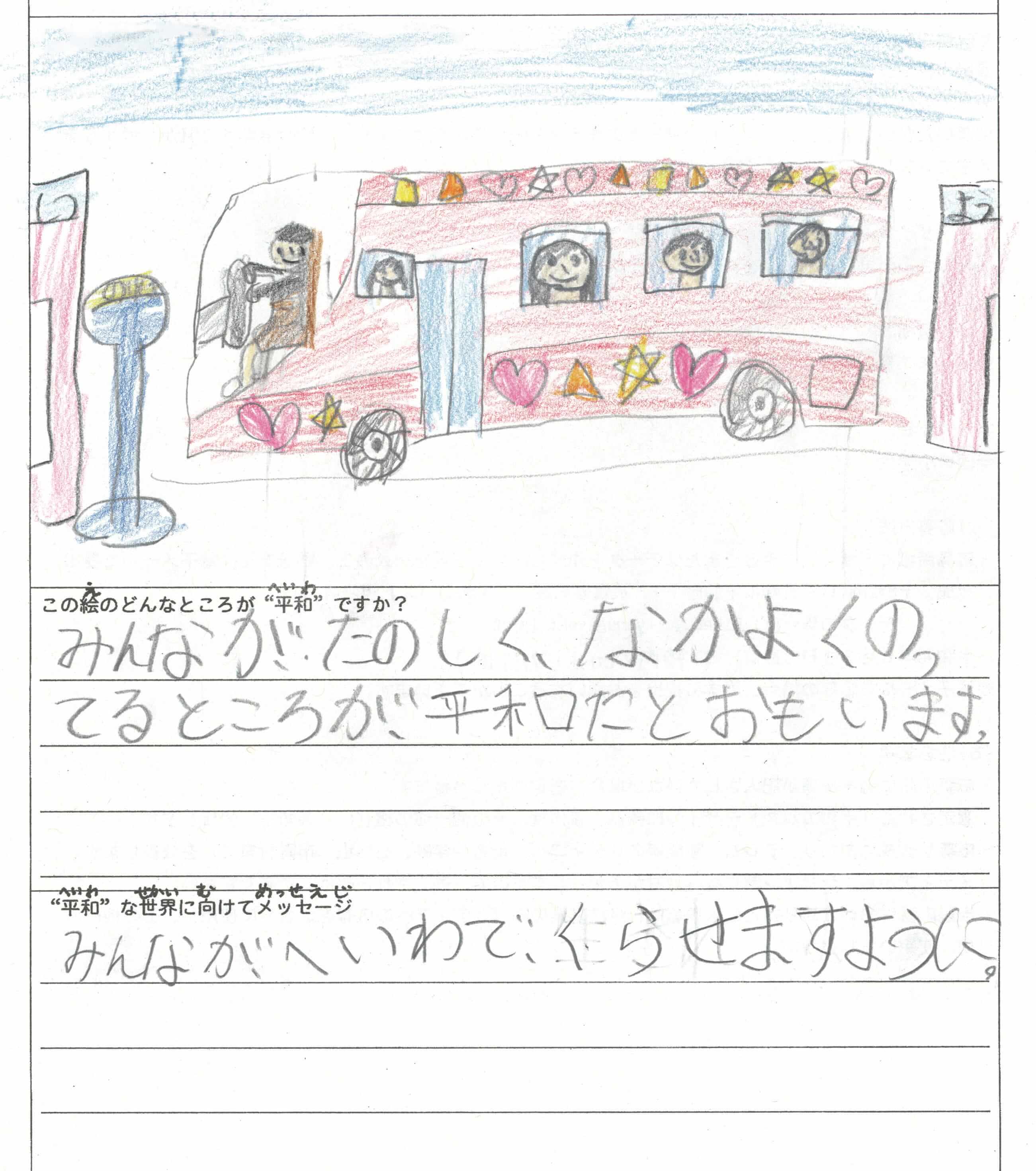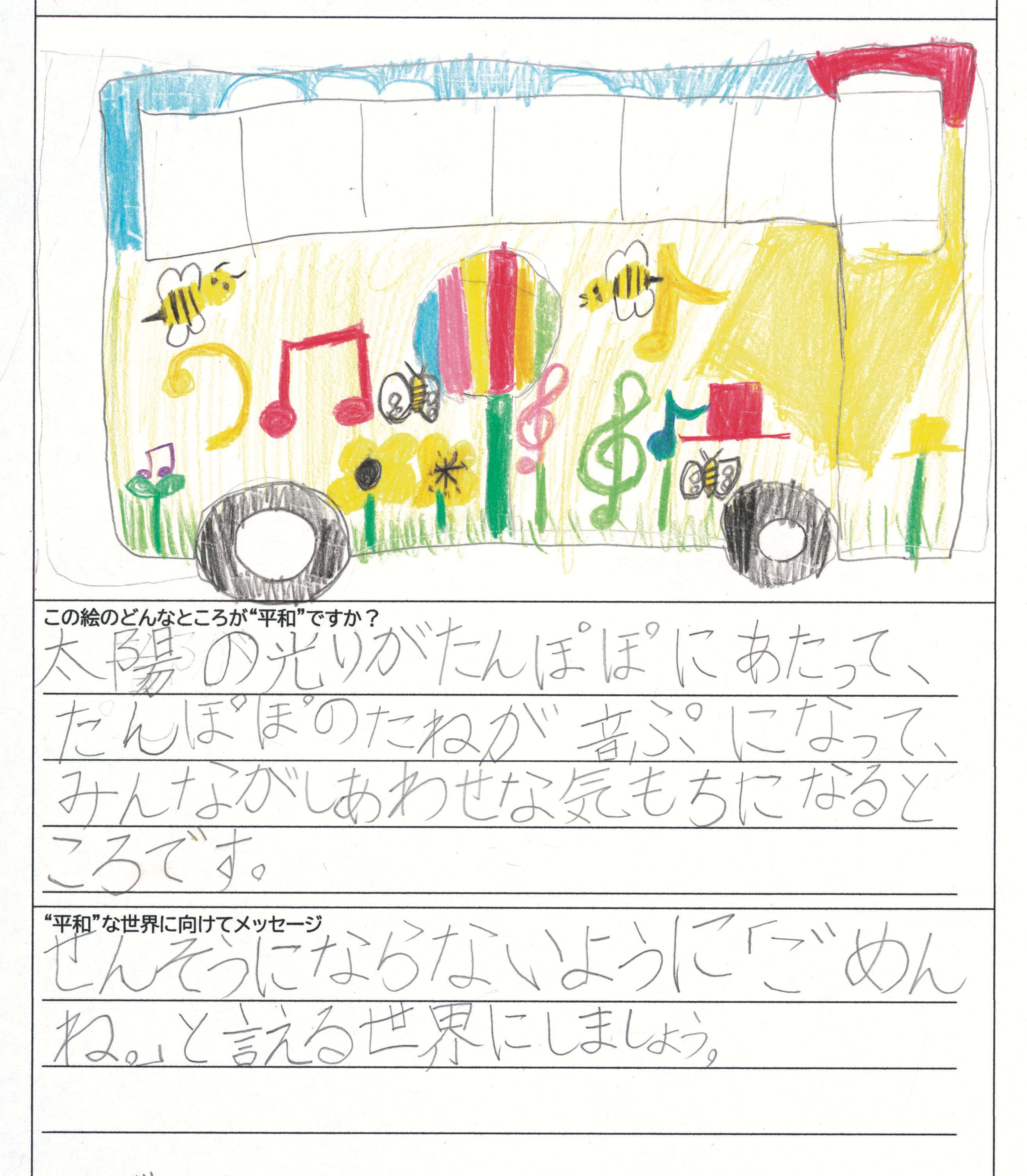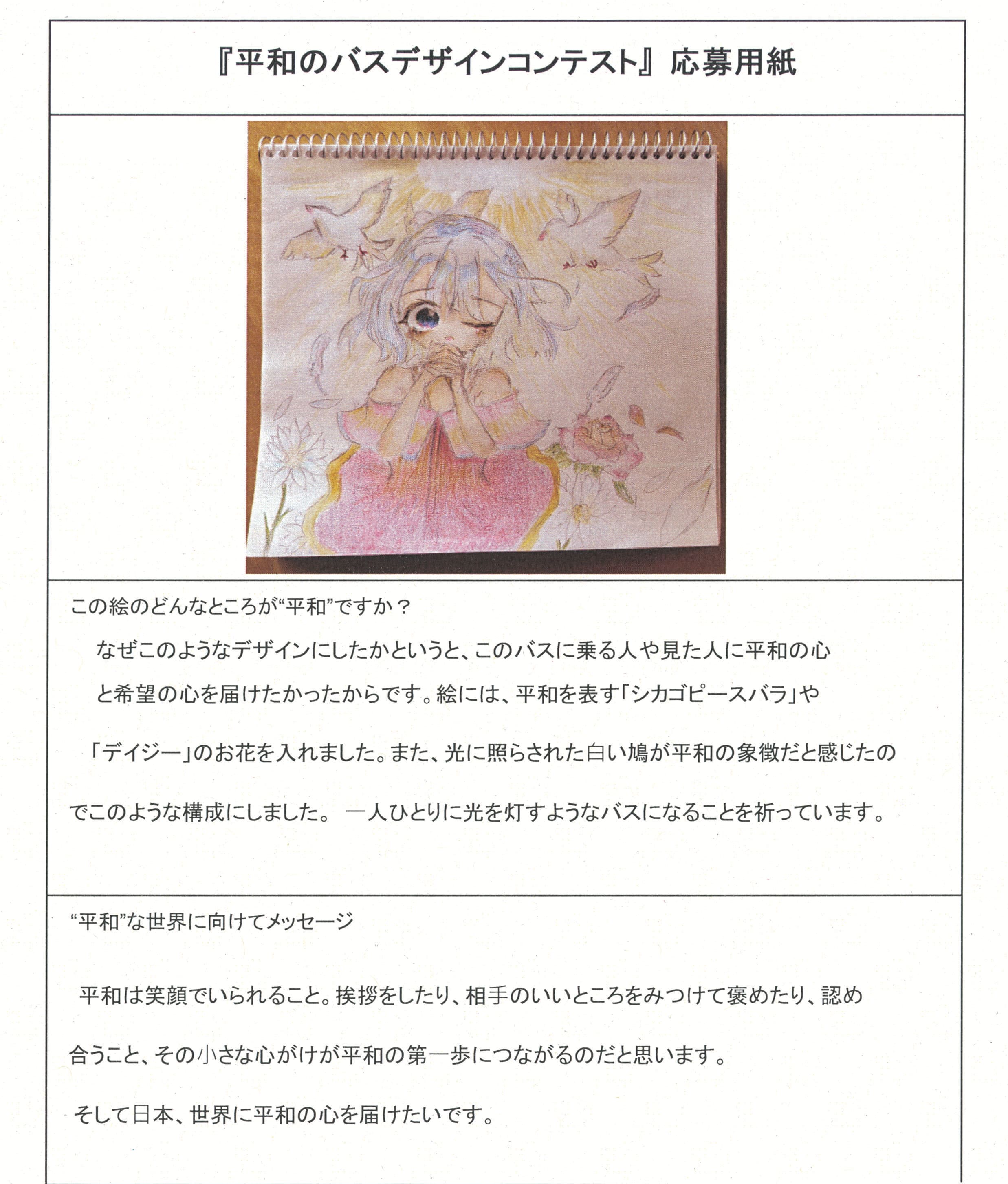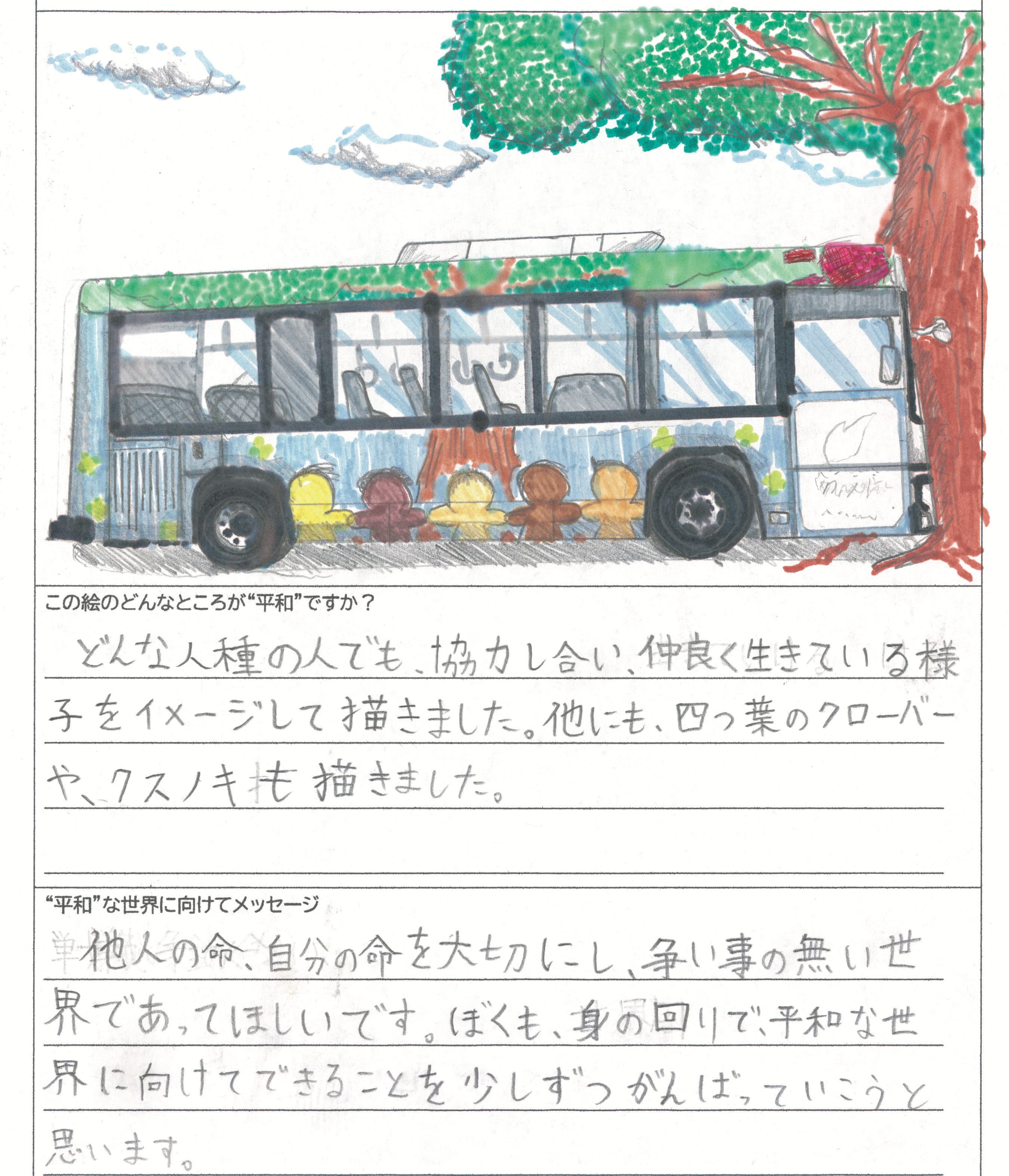 さらに、令和4年度からは全国の小学生を対象とした「平和のバスデザインコンテスト」を実施し、選ばれたデザインをバスの車体にラッピングした『平和のバス』を運行しています。