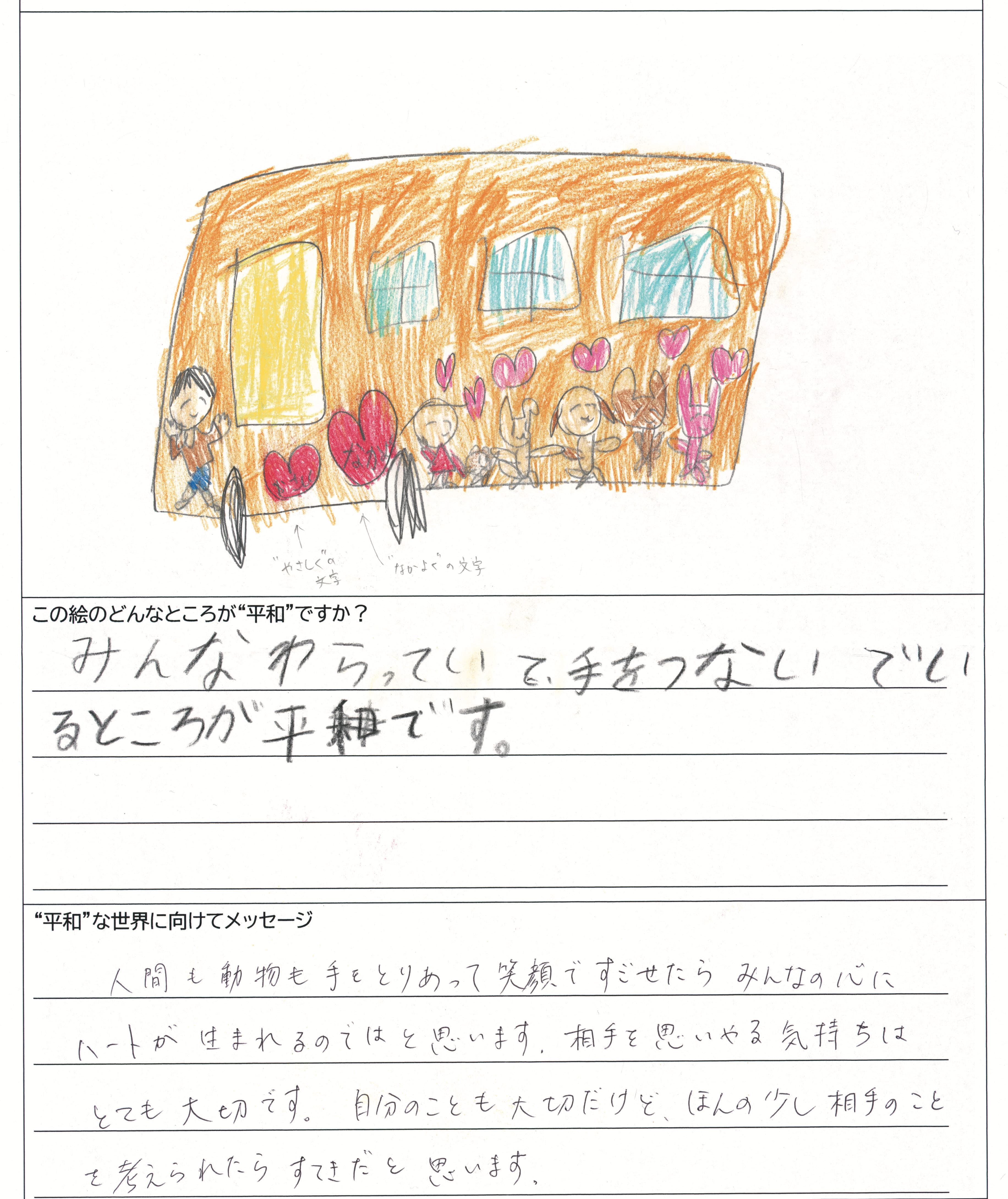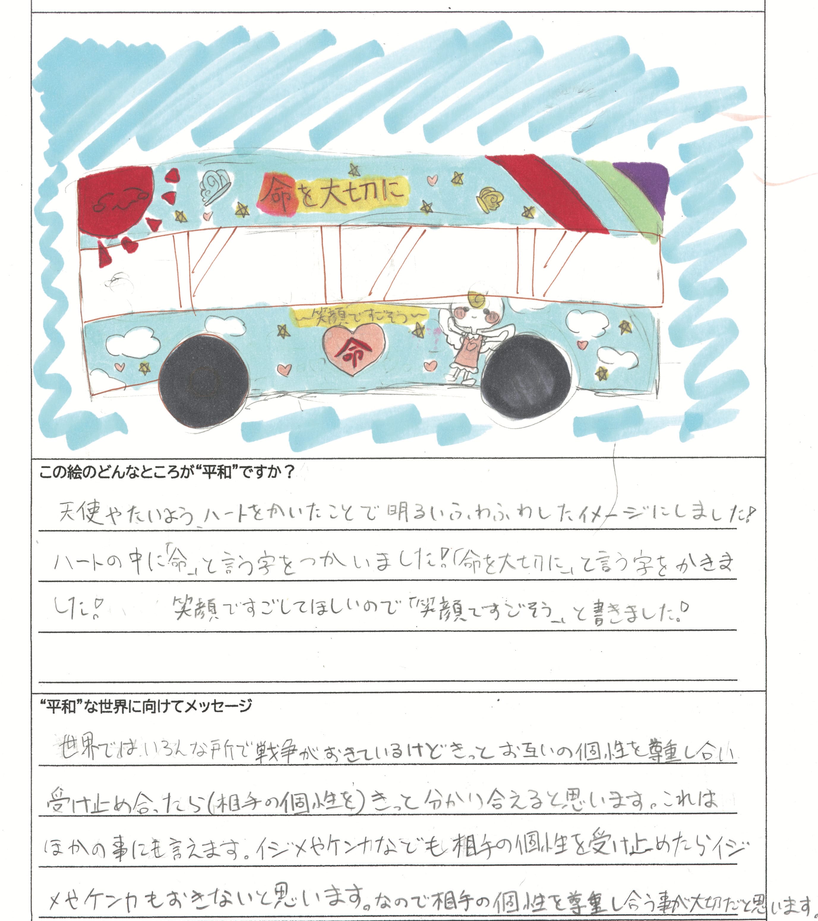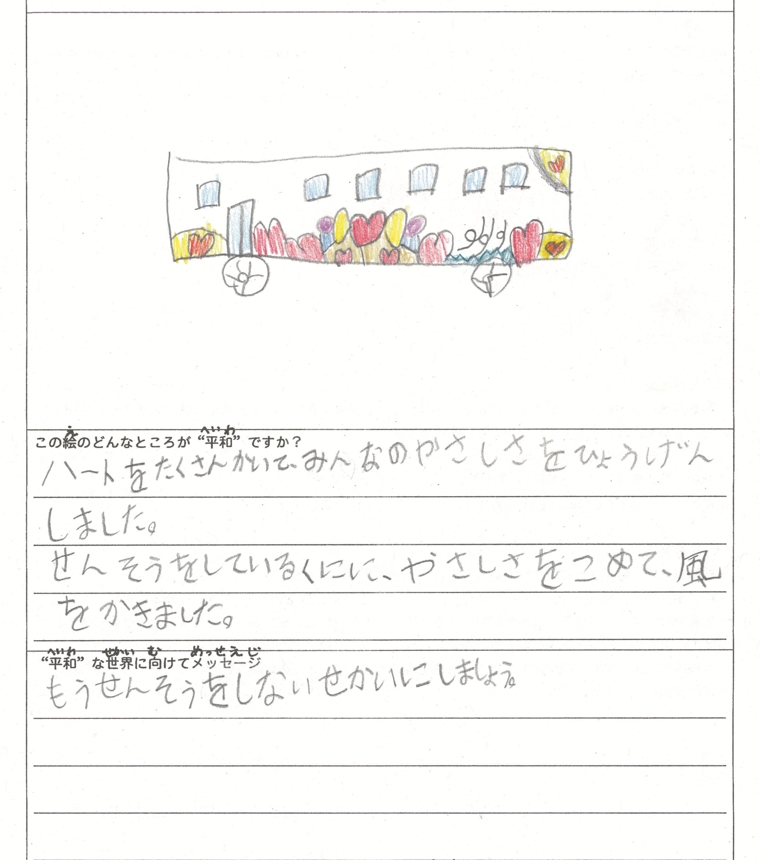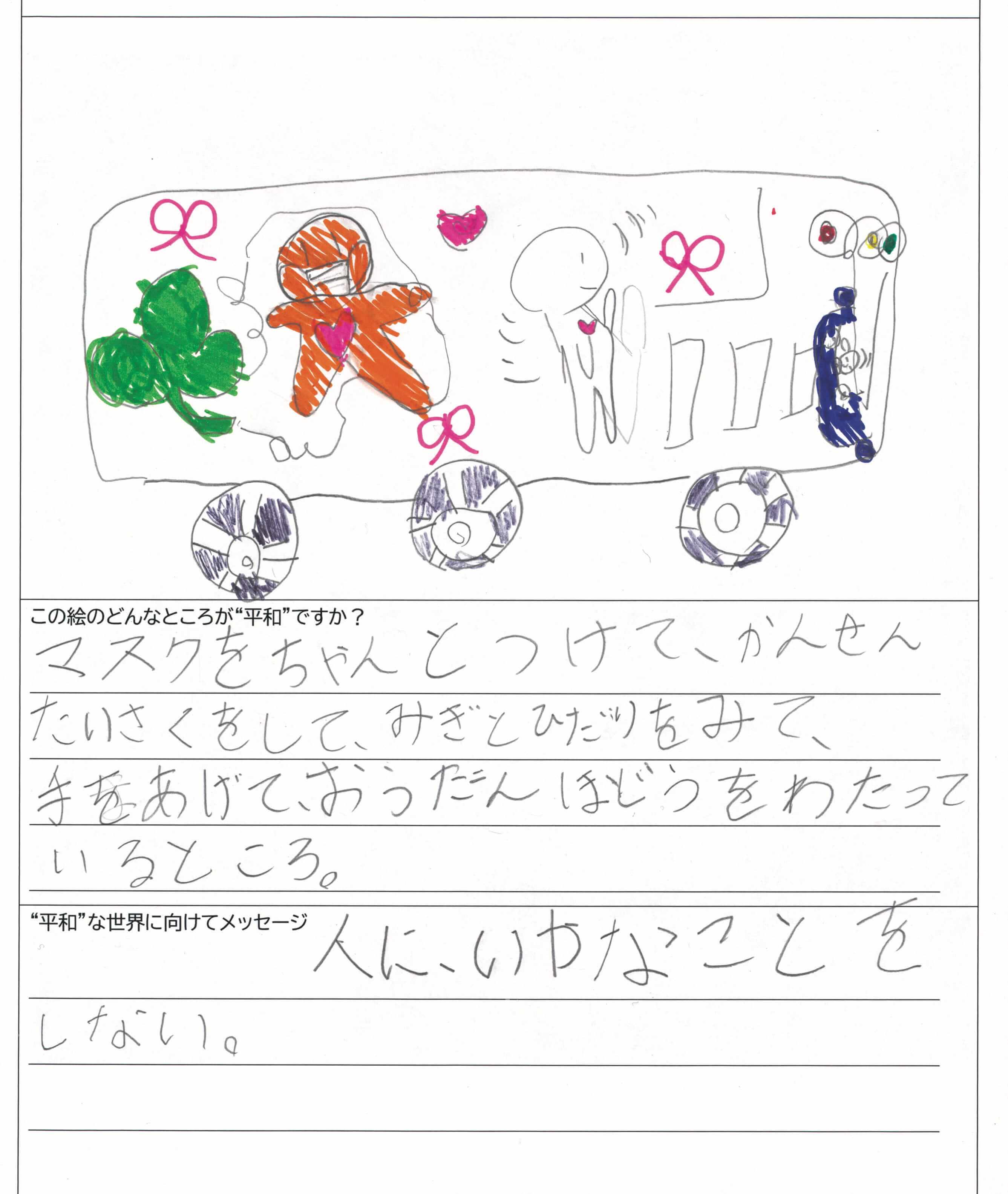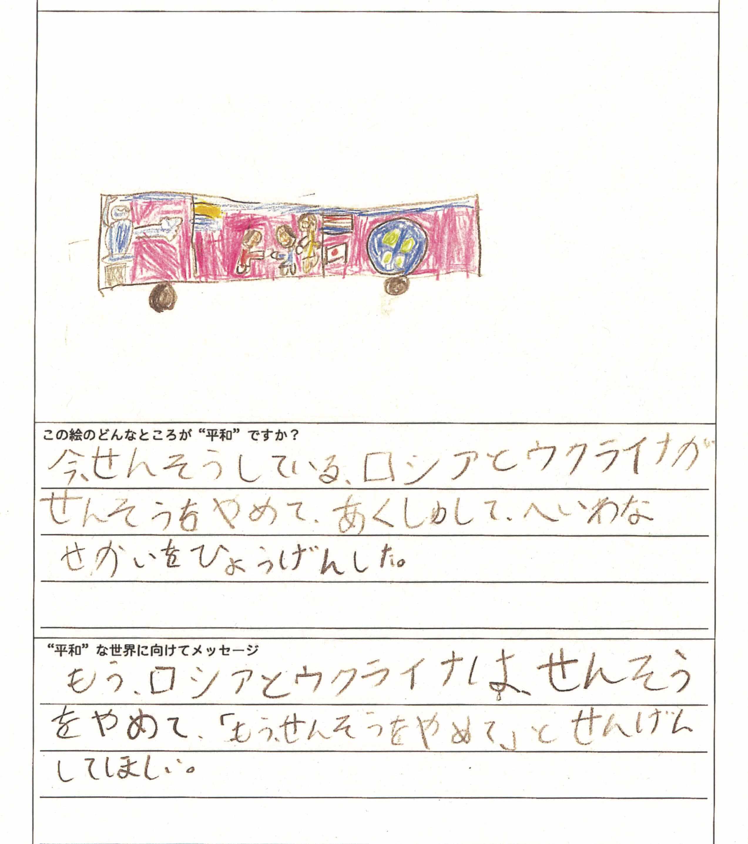 さらに、令和4年度からは全国の小学生を対象とした「平和のバスデザインコンテスト」を実施し、選ばれたデザインをバスの車体にラッピングした『平和のバス』を運行しています。