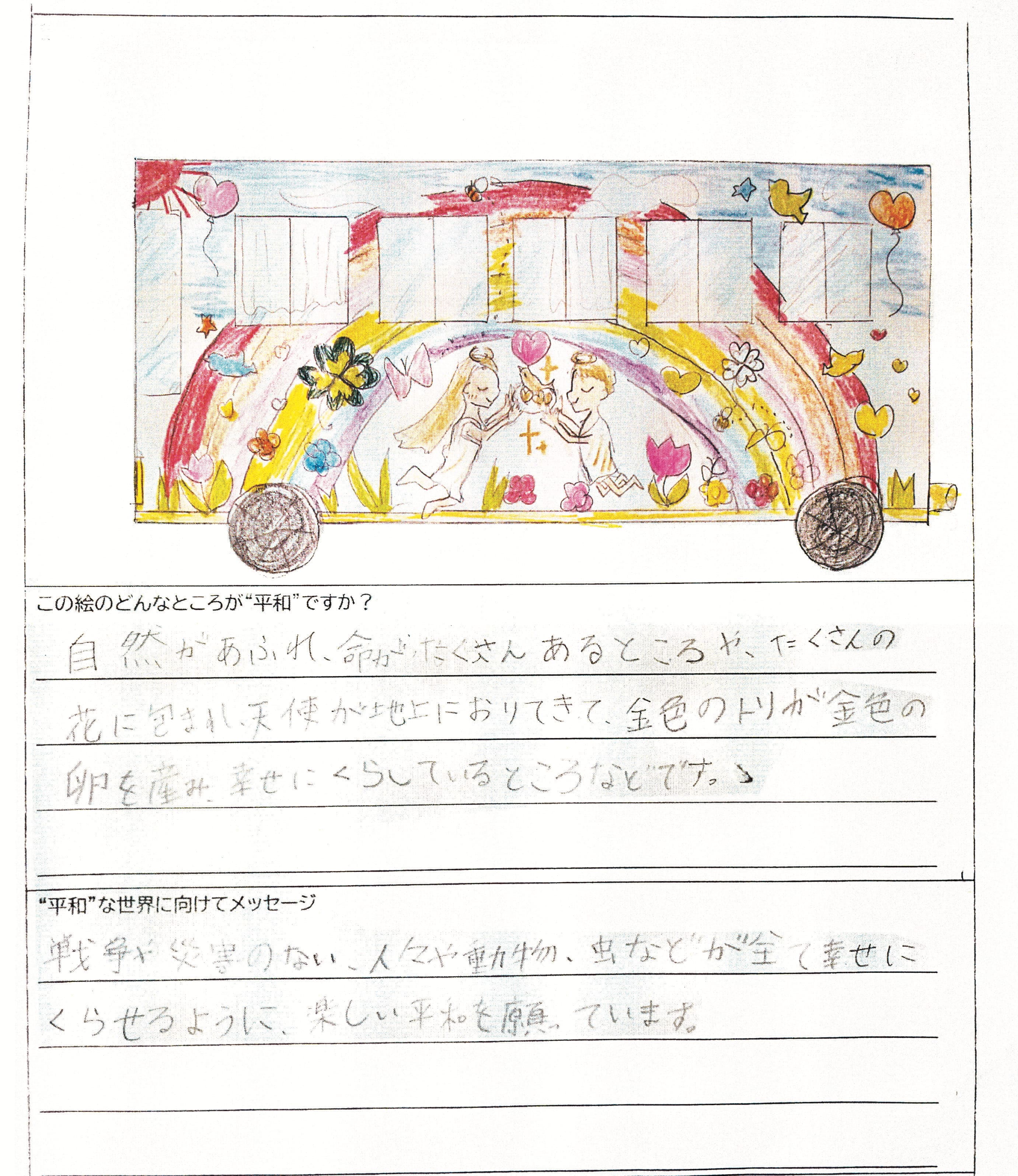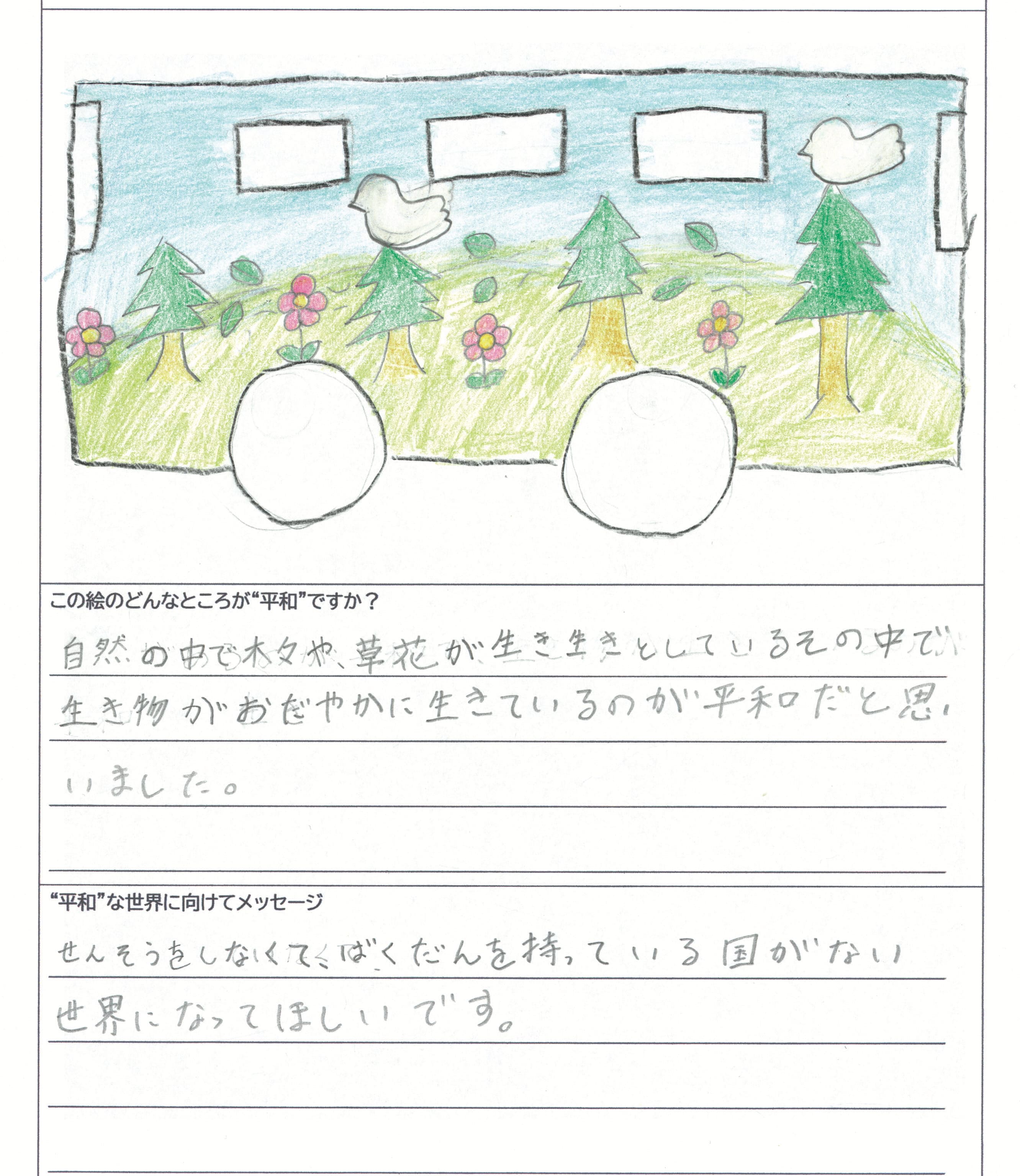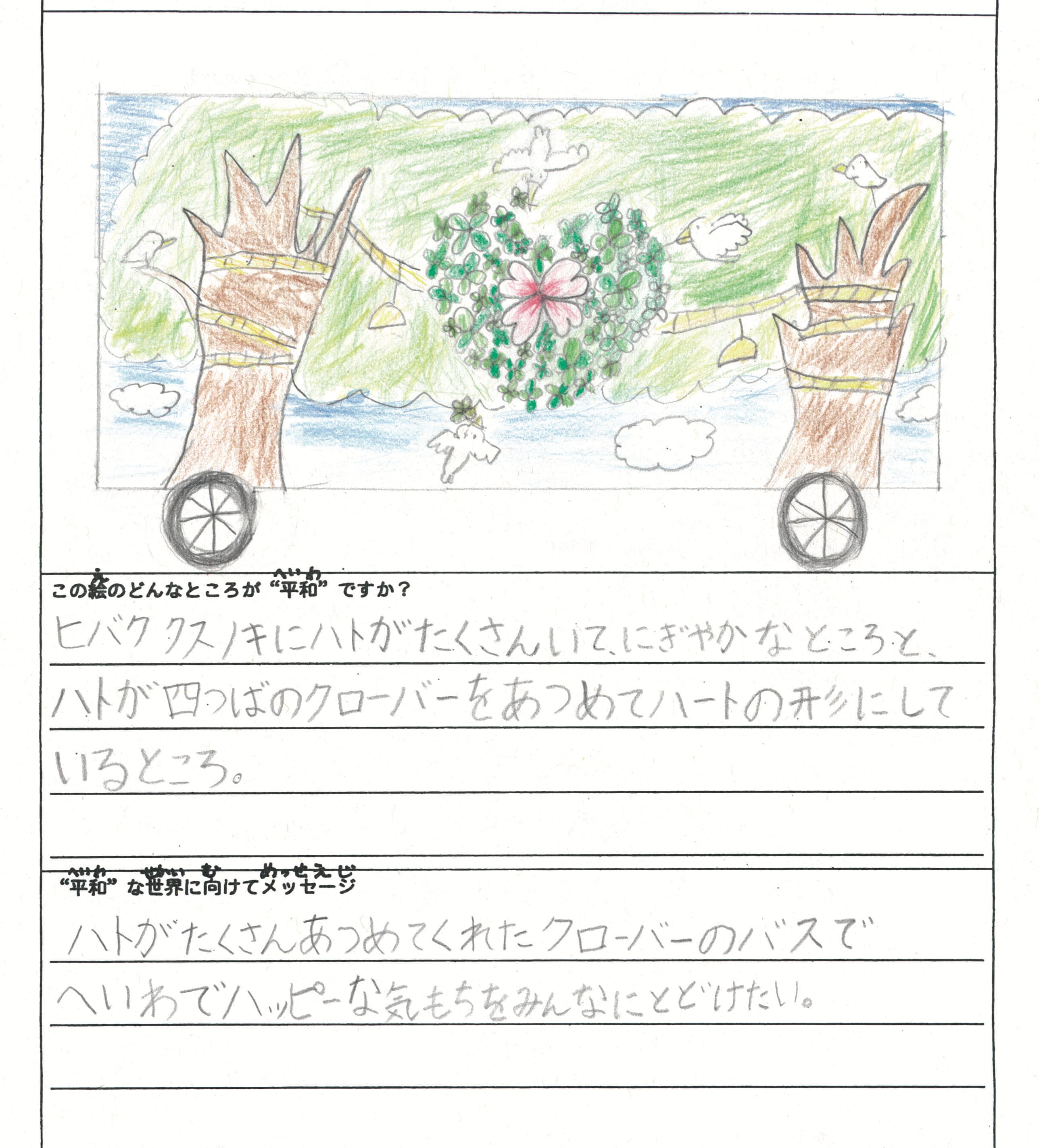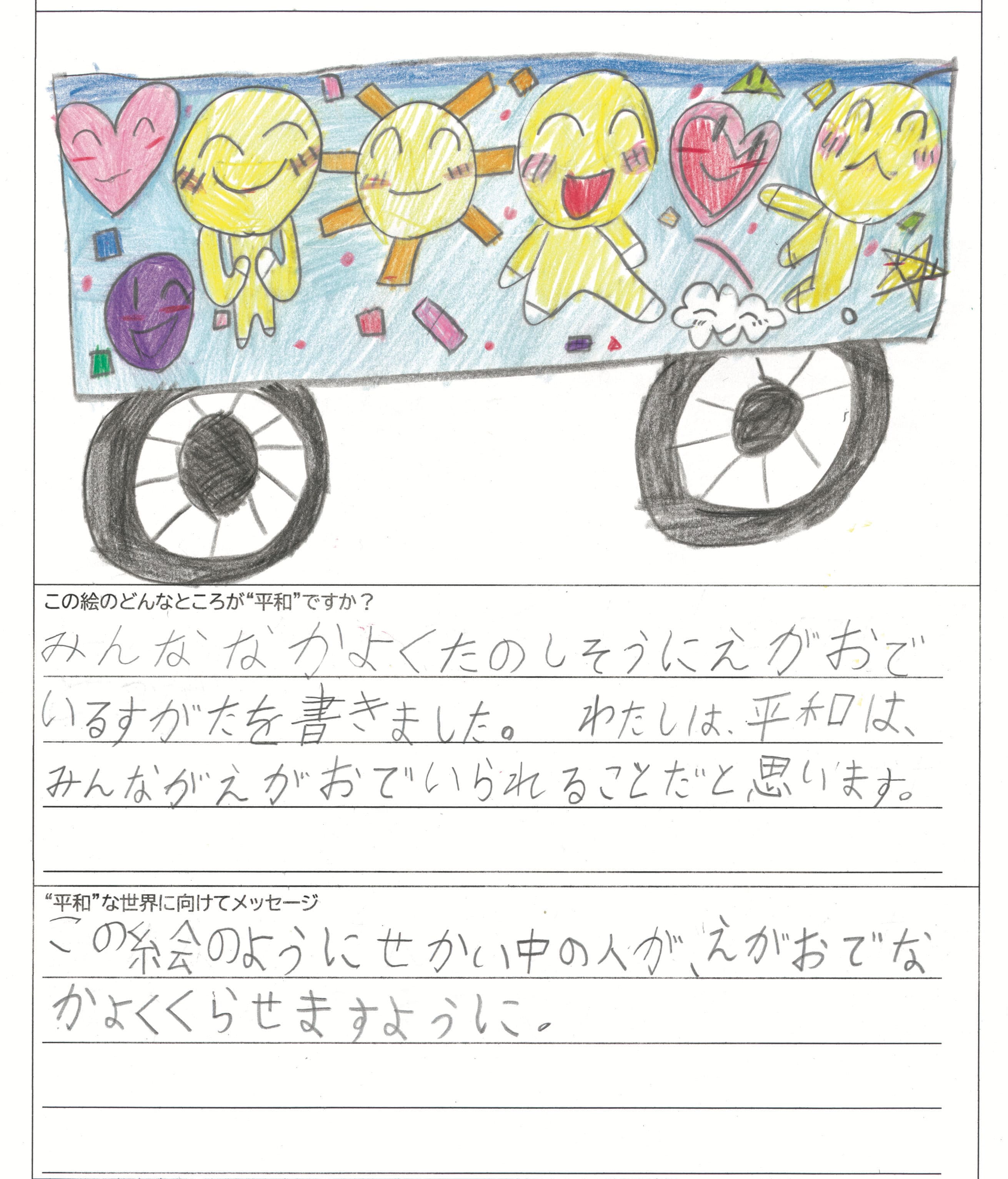 さらに、令和4年度からは全国の小学生を対象とした「平和のバスデザインコンテスト」を実施し、選ばれたデザインをバスの車体にラッピングした『平和のバス』を運行しています。