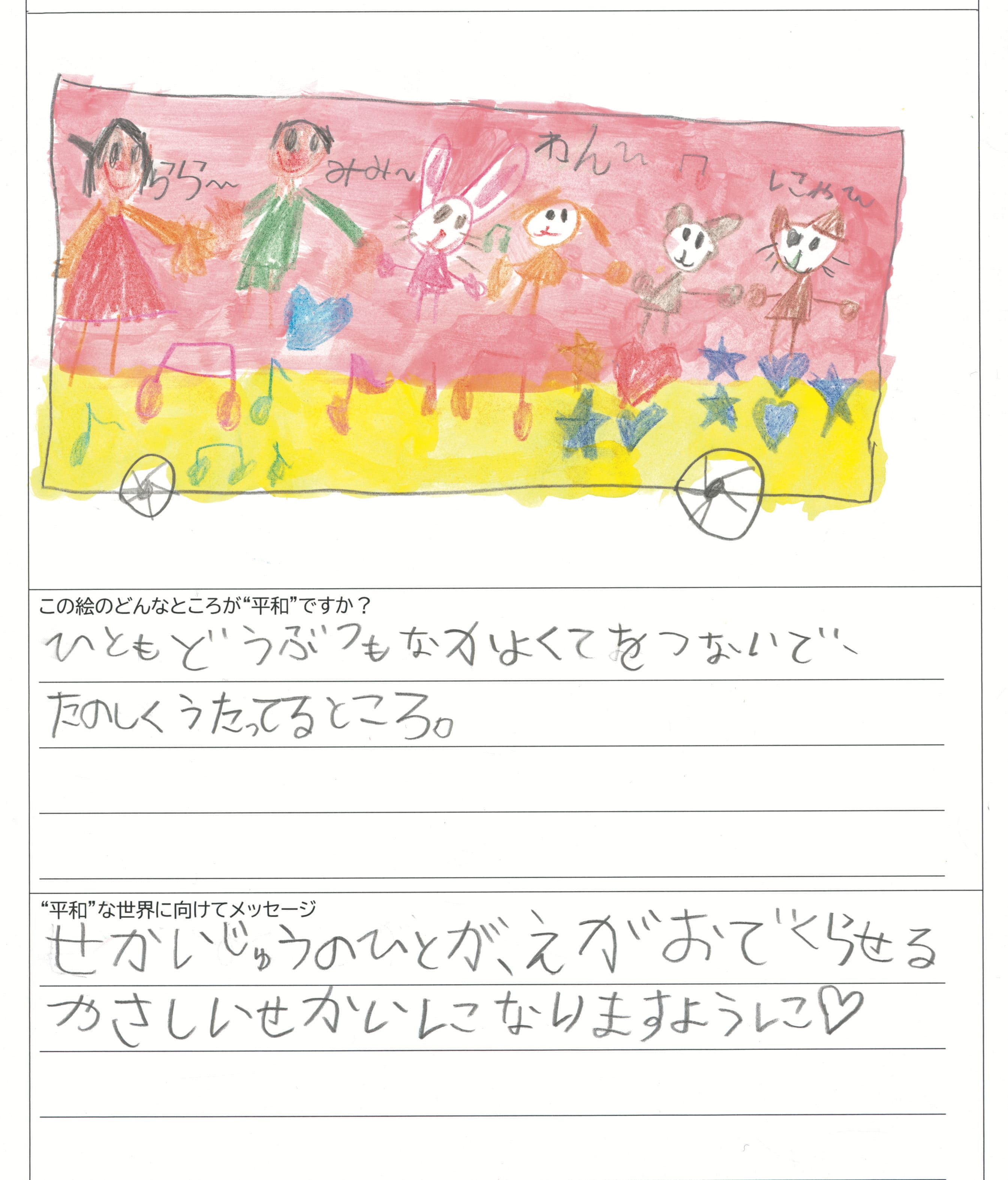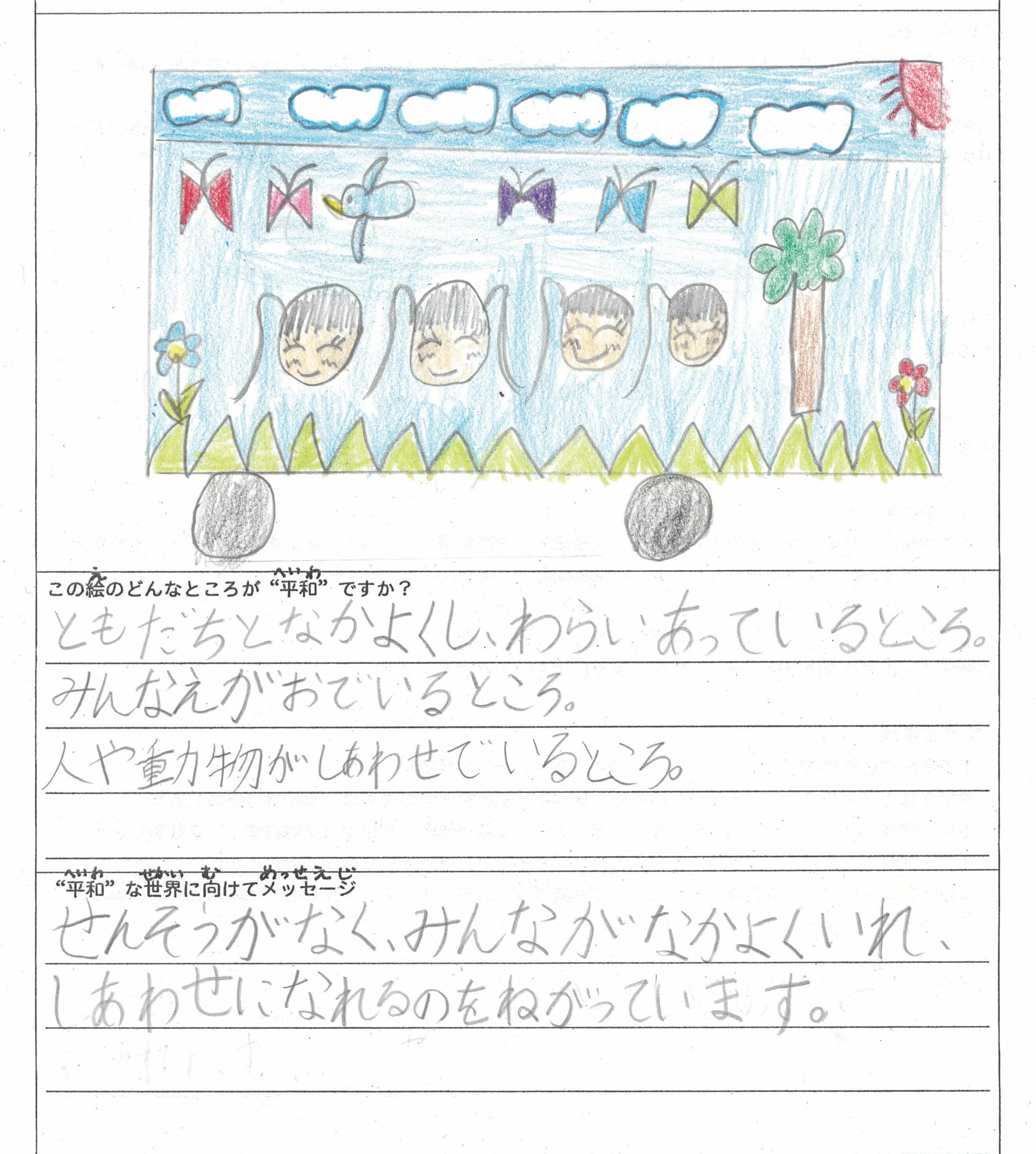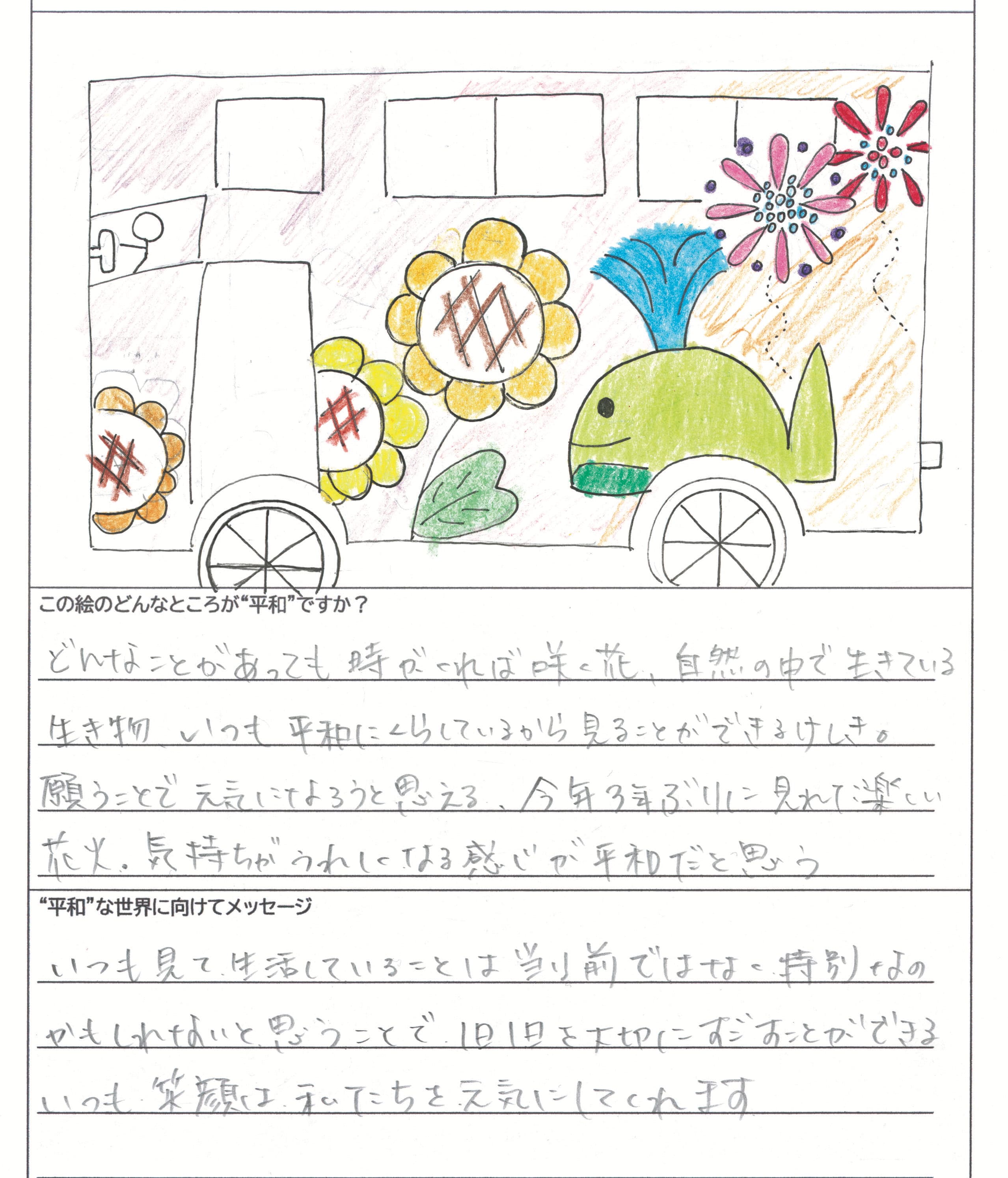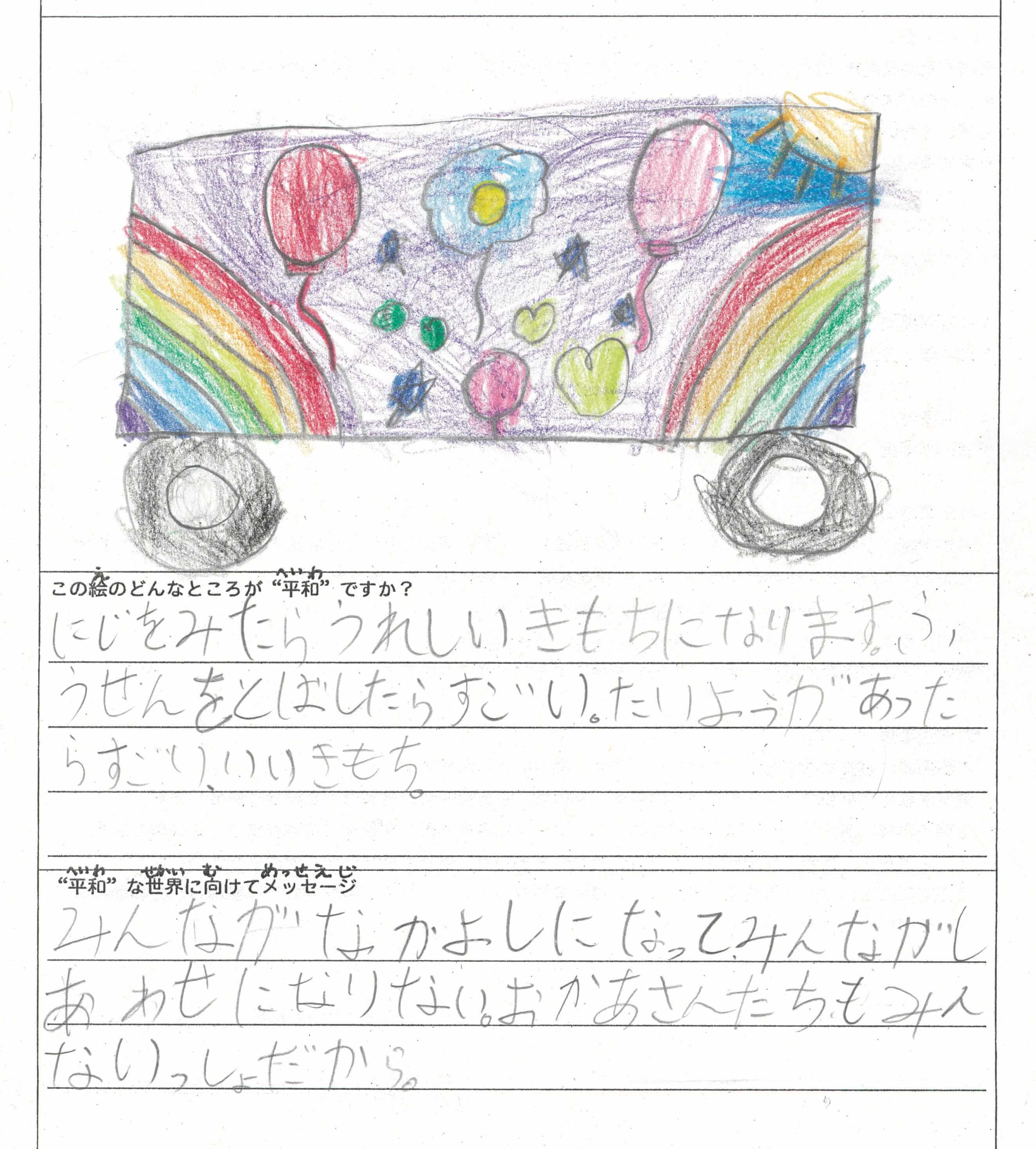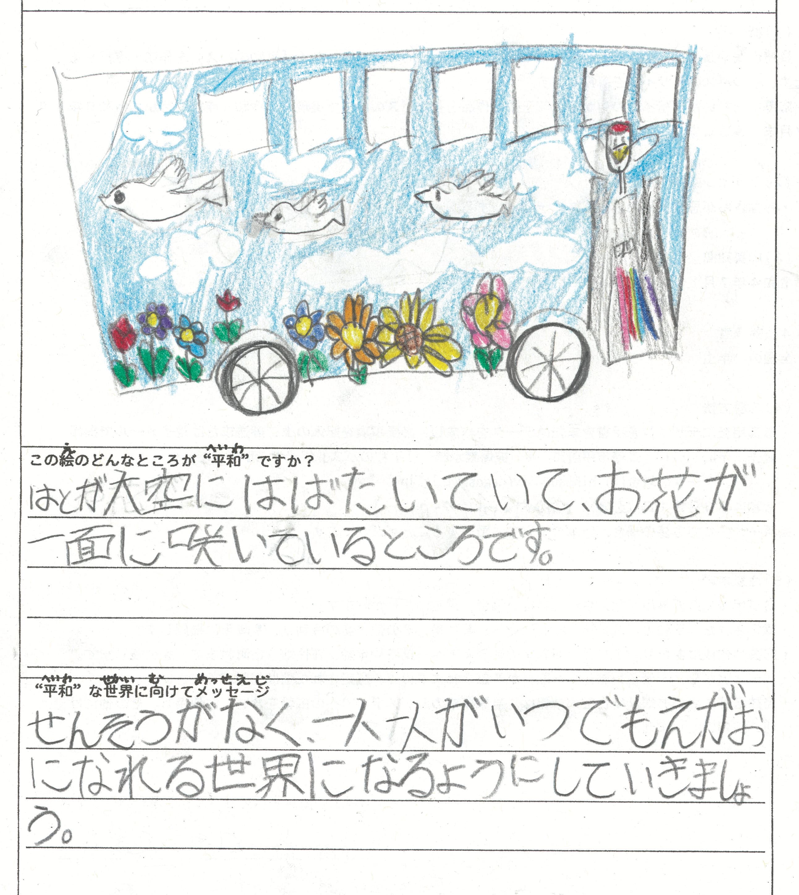 さらに、令和4年度からは全国の小学生を対象とした「平和のバスデザインコンテスト」を実施し、選ばれたデザインをバスの車体にラッピングした『平和のバス』を運行しています。